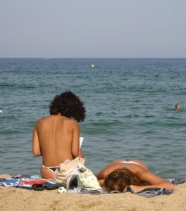 Barceloneta scoppia di gente, ovvio, ma a parte che sotto l’Hotel Vela al tramonto è bellissimo (nonostante l’Hotel Vela), non capisco quelli che vanno a Masnou, o Montgat. Capirei la Costa Brava, Sant Pol de Mar, Calella: anche un’ora di treno mi sembra più sensata di mezza per una spiaggia che fa tanto Villaggio Coppola con l’acqua pulita. A questo punto, non è meglio Poblenou, a portata di metro? Con le sue reti da pallavolo, la gente giovane, la collinetta per nudisti, la rambla elegante e tranquilla lì vicino… E l’acqua che alla fine non è malaccio. Boh, per leggere un libro va bene anche Barceloneta.